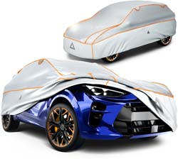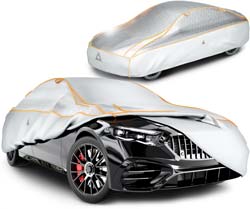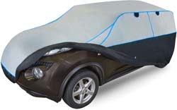Hagelschutz mit dem gewissen Extra Ihr Auto steht das gesamte Jahr draußen auf Ihrem Privatparkplatz und ist dem Wetter schutzlos ausgeliefert. Doch nun gibt es die schützende Lösung: egal ob Sommer, Winter, Frühling oder Herbst, unsere Hagelschutzplane Hybrid UV Protect aus innovativen Materialien bietet Ihnen die nötige Sicherheit, damit Sie Ihr Auto sicher abdecken und gerne bei jedem Wetter draußen stehen lassen können. Qualität auf höchstem Niveau Die Hagelschutzplane Hybrid UV Protect wird aus speziell entwickeltem Hybridschaumstoff und einer hochwertigen 3-lagigen UV Schutzmembran gefertigt, um einen optimalen Schutz vor Hagel und anderen Wettereinflüssen zu bieten. Insgesamt hat die Hagelschutzplane eine Stärke von ungefähr 8 mm, wovon ca. 7mm auf den Hybridschaumstoff entfallen. Das Material wurde über 500 Stunden einem Bewitterungstest unterzogen und kann somit über das ganze Jahr hinweg Ihr Auto schützen. Trotzdem ist eine längerfristige Anwendung nur dann zu empfehlen, wenn die Hagelschutzplane nach jedem Hagelereignis entfernt und getrocknet wird. Nur so kann die Bildung von Feuchtigkeit unter der Abdeckung verhindert werden. Zusätzlich sorgen reflektierende Einfassbänder und 4 Reflektoren für erhöhte Sichtbarkeit des geparkten und bedeckten Fahrzeuges. Einfache Montage Die Hagelschutzplane Hybrid UV Protect ist durch elastische Nähte sehr einfach zu beziehen. An der Unterseite des Autos wird sie durch zwei Gurte befestigt. Zusätzlich wird ein Gurt Set mitgeliefert, um die Plane bei starkem Sturm noch mehr zu fixieren. Montieren Sie die Hagelschutzplane nur auf geparkte Fahrzeuge auf nicht öffentlichen Verkehrsflächen. Eine praktische Aufbewahrungstasche erlaubt eine platzsparende Verstauung. Bitte beachten Sie, dass sich unter der Abdeckung Kondenswasser und Feuchtigkeit bilden kann, wenn es für längere Zeit stark regnet und sich viel Feuchtigkeit in der Luft und im Boden befindet. Auch bei stark schwankenden Temperaturen, kann sich unter der Abdeckung Kondenswasser bilden. Dies passiert unabhängig davon, ob die Plane wasserdicht ist oder nicht. Deshalb ist es umso wichtiger, die Plane regelmäßig vom Auto zu nehmen, zu lüften und zu trocknen. Kunden, die ebenfalls eine Hagelschutzplane gekauft haben, fragten oft: